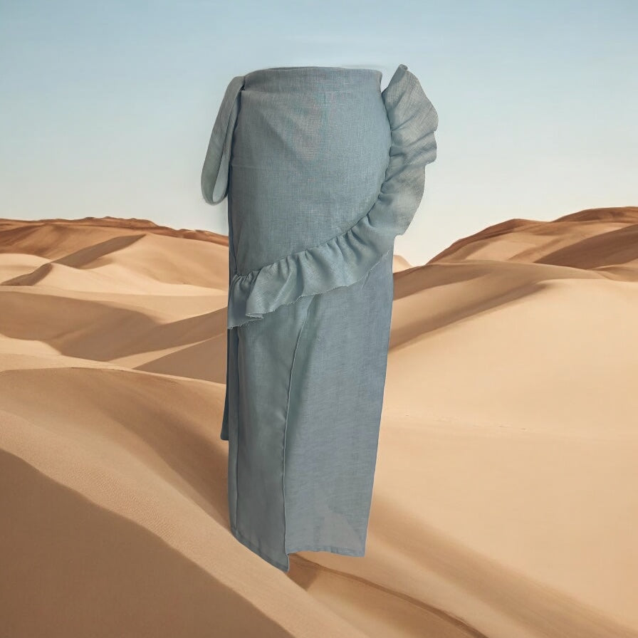 Piece Light and refined, the 10:10 Wrap Skirt is crafted from airy linen and wrapped with a soft ruffle along the front. Its sculptural drape flatters the form while staying breathable and relaxed—perfect for warm days with effortless elegance.