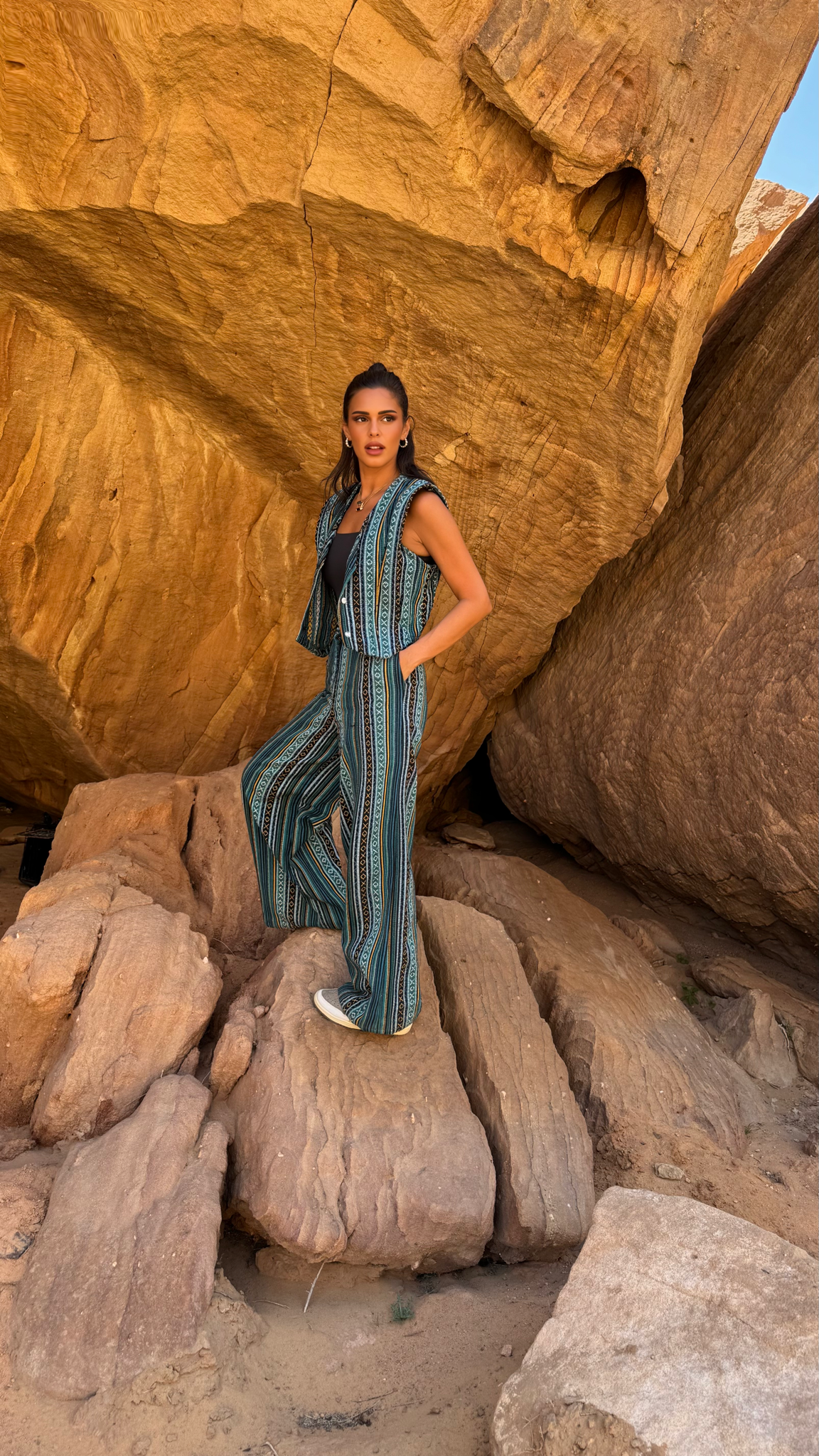 styling tip Pair with the matching vest for a coordinated, heritage-inspired set, or tuck in a crisp white blouse and add sandals for an effortlessly polished look.
